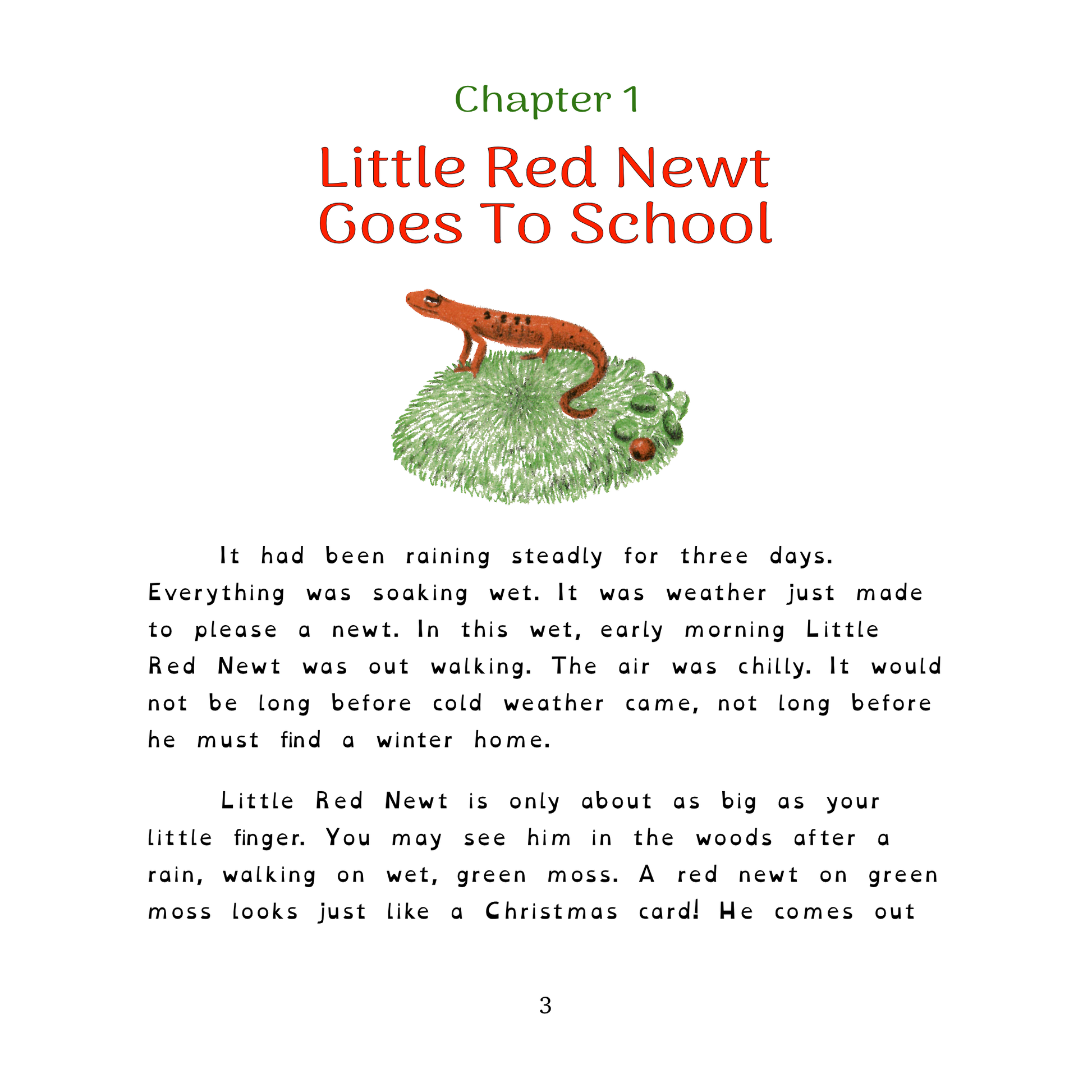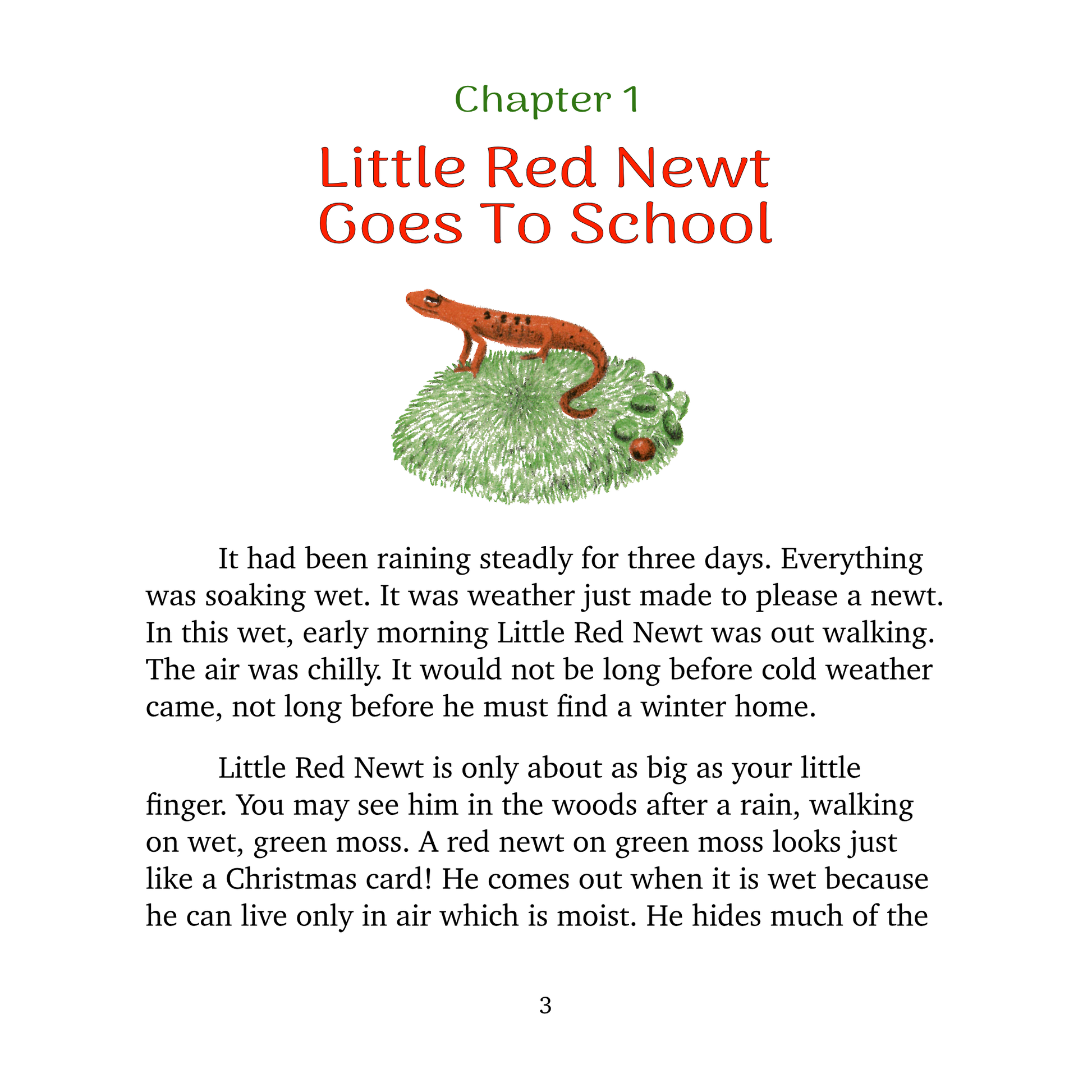 When Peter brings a tiny red newt to school, his classmates embark on a year-long journey of discovery. As they build a terrarium, observe their pet, and learn about the natural world, the children develop curiosity, responsibility, and respect for living things. Written in a clear, engaging style and illustrated by Henry Bugbee Kane, Little Red Newt is a timeless introduction to nature study for young readers. This work is in the public domain in the United States of America, and possibly other nations.